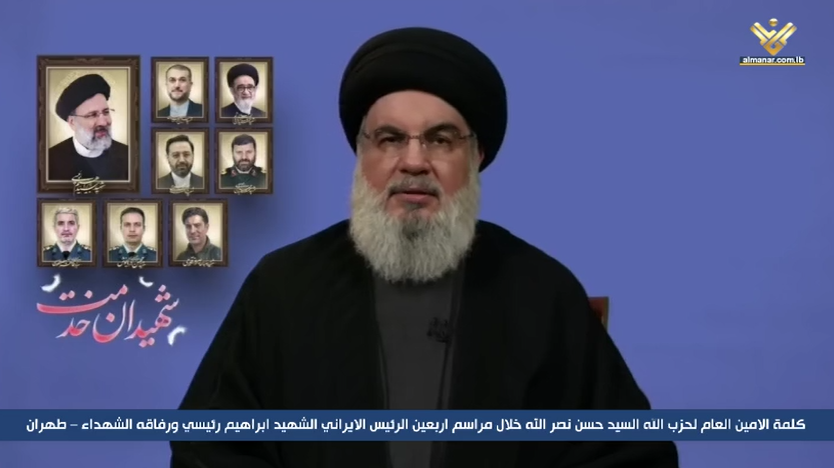 El cuadragésimo día después de la muerte del presidente iraní Sayyed Ebrahim Raisi y sus compañeros en el trágico incidente, el secretario general de Hezbolá, Sayyed Hasan Nasralá, se dirigió a la ceremonia celebrada en Teherán para llorar a los mártires.