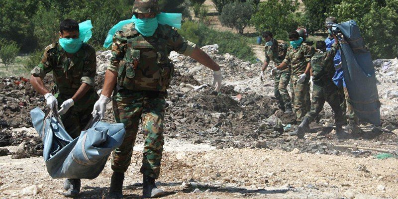 La Defensa Civil y los equipos de la Media Luna Roja Árabe Siria de la central provincia de Hama fueron los organismos encargados de sacar los cadáveres de las profundas cavidades y transportarlos hasta el hospital.