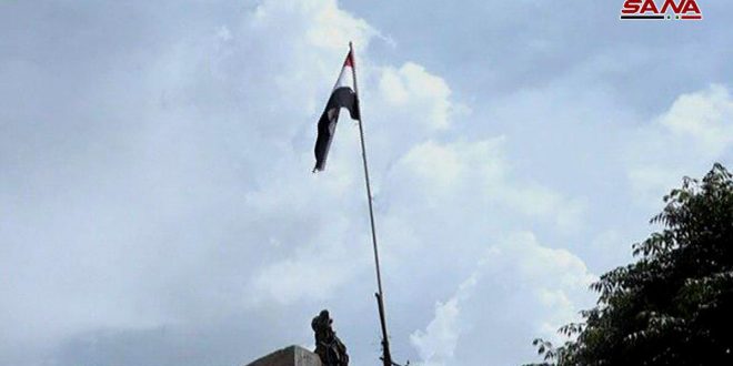 La bandera de Siria fue izada en la plaza en una solemne ceremonia, después de que las fuerzas gubernamentales restablecieran el control de esta parte de la cuidad tras negociaciones exitosas con los líderes de grupos armados ilegales, con mediación de oficiales rusos.