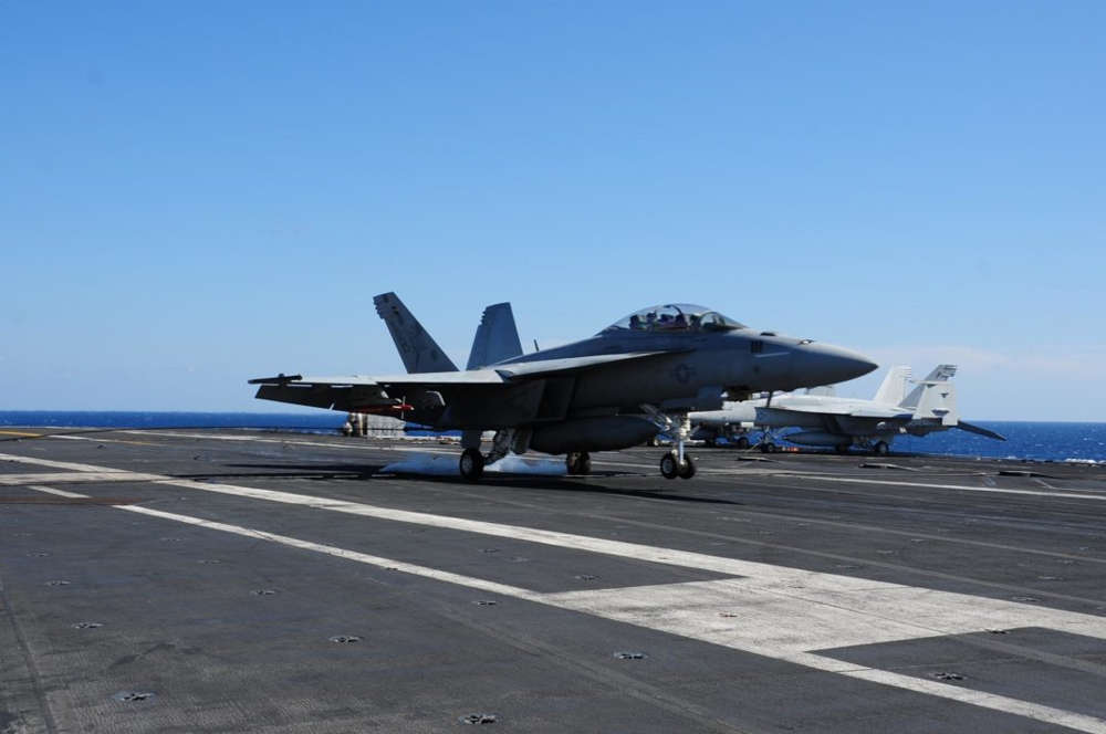 Según la revista The Drive, los dos miembros de la tripulación del avión se catapultaron con éxito fuera del aparato y fueron rescatados por un helicóptero MH-60S Sea Hawk del Escuadrón 8º de Helicópteros de Combate Marítimos (HSC 8) también presente en el portaaviones.